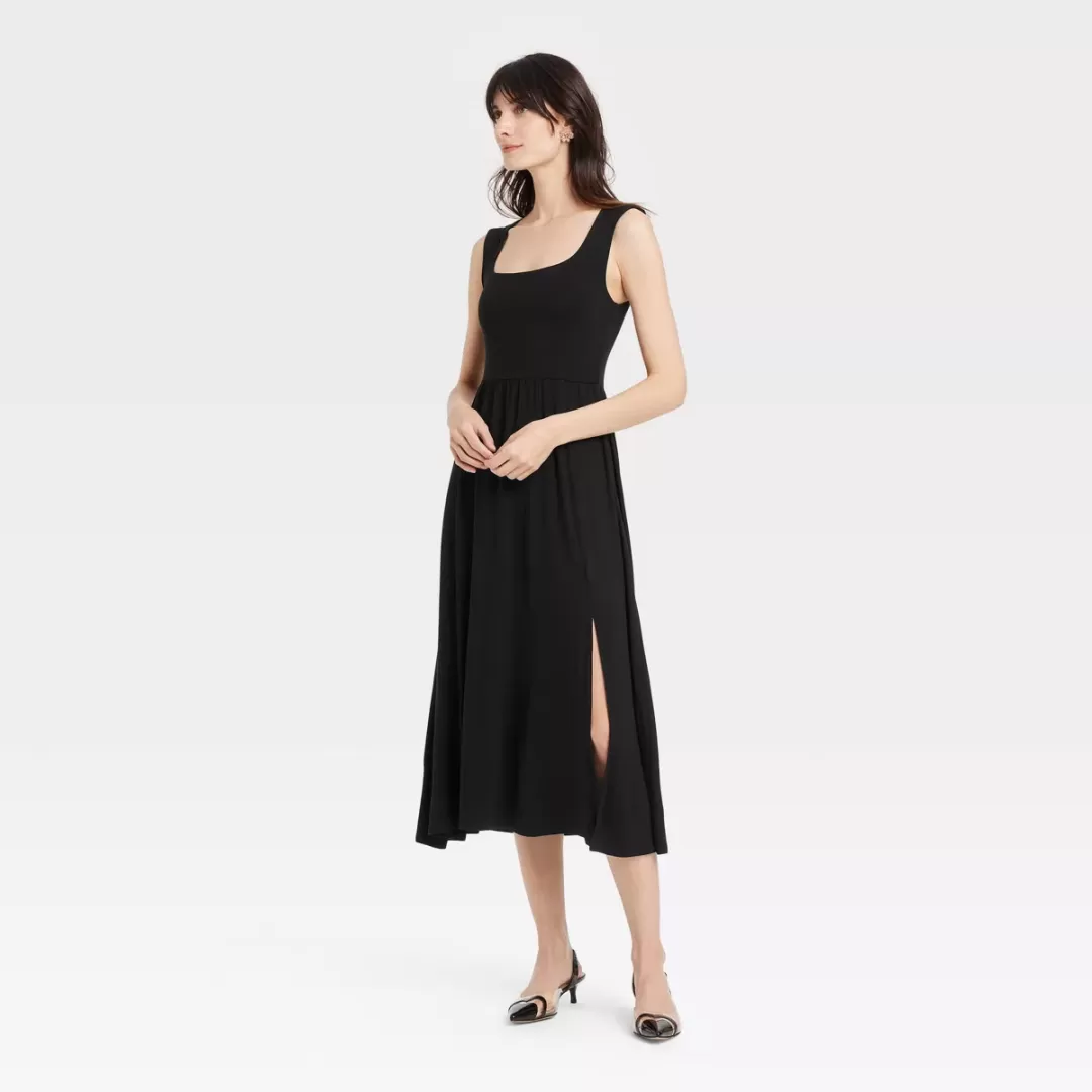 Fit & styleModel wears size XS and is 5'9"Knit ballet shift dressSoft, stretchy jersey fabricSquare necklineSide slitSide pocketMidi length...