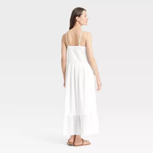 Fit & styleModel wears size XS and is 5'10"Universal Thread eyelet sundressCotton woven fabricV-neckline and button-frontAdjustable spaghetti strapsPull-on closureMaxi length...